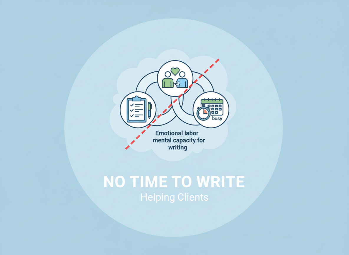 Sessions, documentation, and emotional labor leave no room or mental capacity for writing.